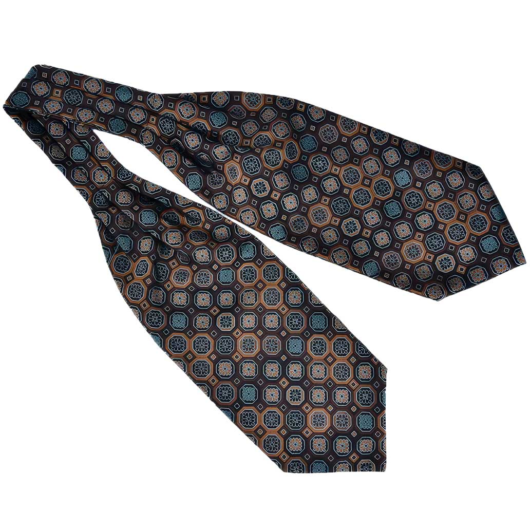Ascot cravate marron motif médaillon vintage pour homme. Foulard ascot élégant idéal pour mariage, cérémonie ou soirée chic. Style raffiné et intemporel.