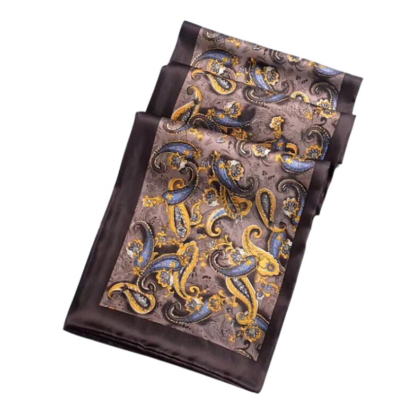 Laissez-vous envelopper par l’élégance intemporelle de notre Foulard Homme Soie Paisley Café, un accessoire de mode conçu pour les hommes en quête de raffinement et de qualité. Confectionné en 100% soie, ce foulard se distingue par son motif paisley dans des tons de café, jaune et bleu, évoquant la sophistication et la chaleur.