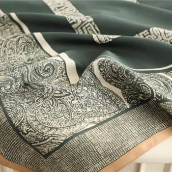 Avec ses dimensions généreuses de 90 cm x 90 cm, ce foulard vous offre une polyvalence exceptionnelle dans son port. Vous pouvez le nouer élégamment autour du cou pour un effet chic, le draper sur les épaules pour un style décontracté, ou même l’utiliser comme accessoire de cheveux pour une touche moderne.